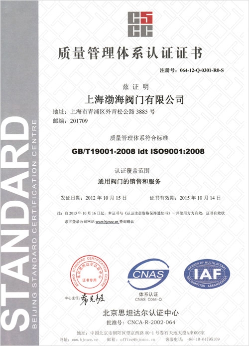 公司名称:上海渤海阀门有限公司 公司地址:上海市嘉定区嘉松北路4558号 联系电话:021-69746026