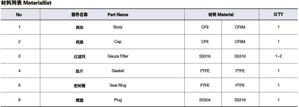 GL11W_不锈钢Y型丝扣过滤器主要零件材料