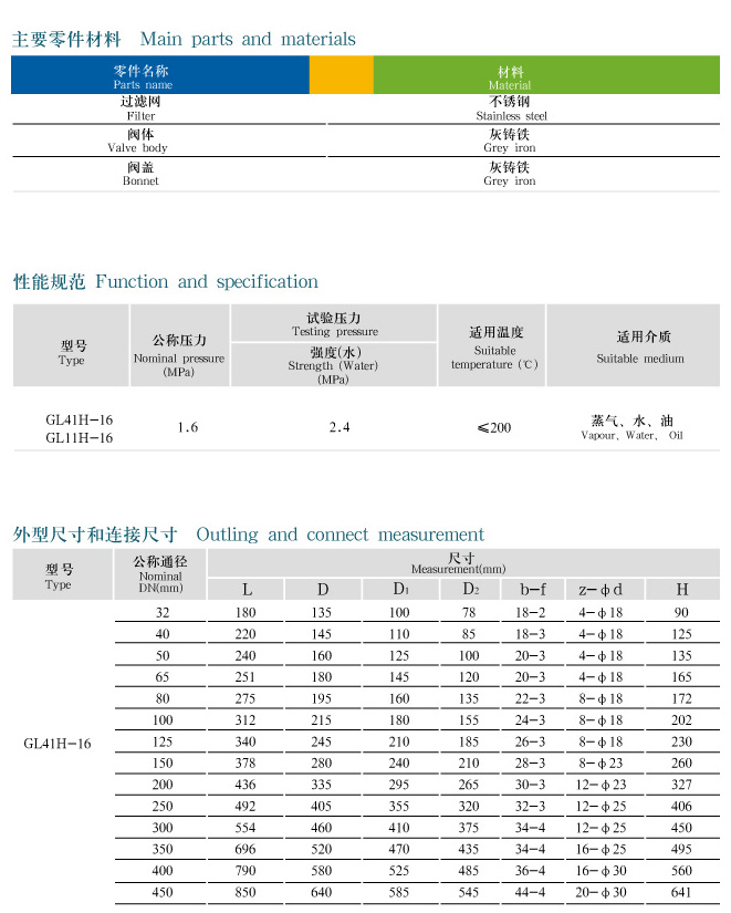 用途:本产品适用于公称压力≤1.6MPa的管路上,可过滤介质中的污垢、锈等杂物。