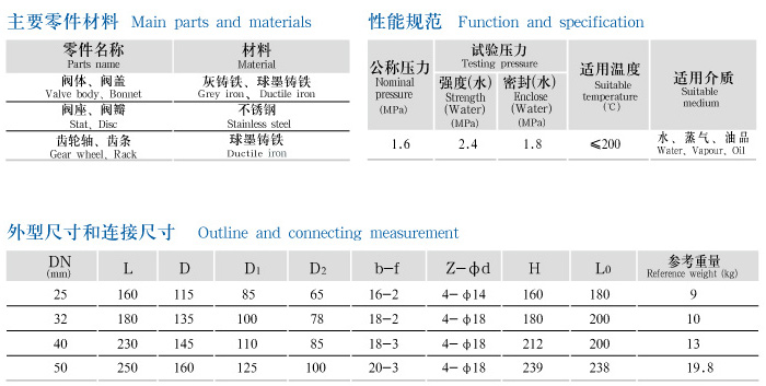 用途:本阀适用于公称压力PN1.6MPa,温度≤200℃的水、蒸气、油品、管路上,作启闭用,并可排除系统内的沉淀物及污垢等。