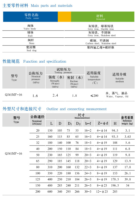 QJ41MF-16型高温球阀